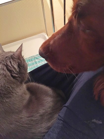 Wir besuchen Ascot und Sunny - Tayla fühlt sich auf Ascot`s Kissen wohl.