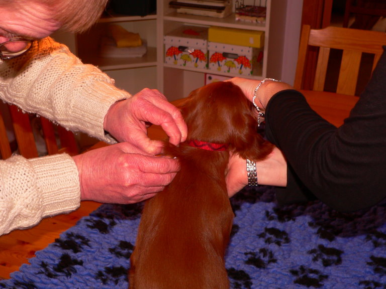 Impfen, Chippen, 3. Untersuchung und Wurfabnahme vom Tierarzt.