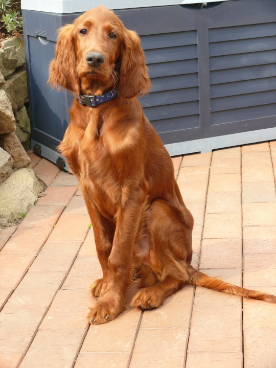ALIA pardon ALICE hat großes Glück!! Anfang 2009 ist bei ihr in der Straße direkt gegenüber (kein Zufall) eine neuer Spielkamerad eingezogen......ein Irischer Setter.......eine Schwester aus dem B-Wurf:   BECKY WHIRLWIND OF LIONHILL ! !   Die beiden haben gleich Kontakt miteinander aufgenommen und spielen zusammen..