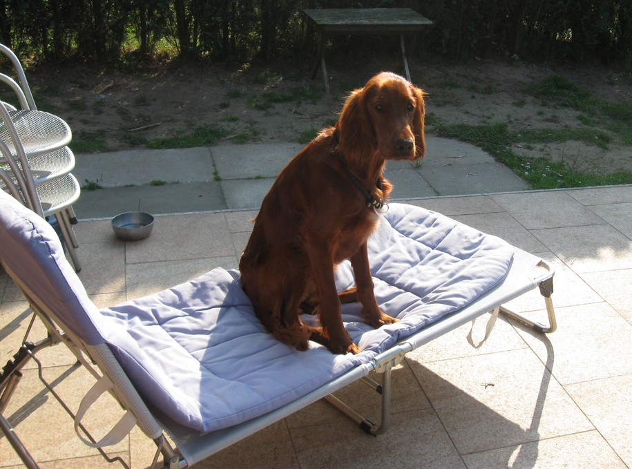 Wenn man (oder Frauchen) mal nicht hinschaut, muss Hund die Gelegenheit nutzen! Die Liege ist doch für mich - oder?