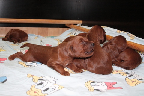 Alle Welpen haben inzwischen die Augen Offen und fangen an sich gegenseitig wahrzunehmen, zu entdecken.