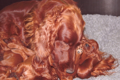 Man spielt (schläft) ganz lieb im neuen Welpenhaus und wird dann plötzlich gestört.