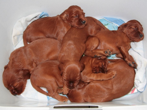 Am besten geht das Wiegen, wenn die Welpen noch so richtig schläfrig sind.