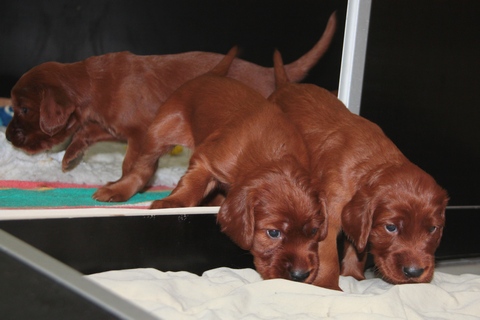 Der erste Ausflug aus der Welpenkiste ins Welpenzimmer.