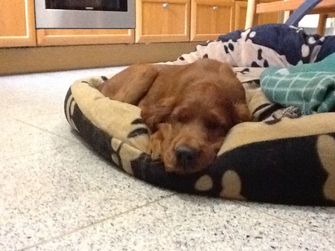 Sie hat die Fahrt gut überstanden, ist schnell im neuen Körbchen eingeschlafen.