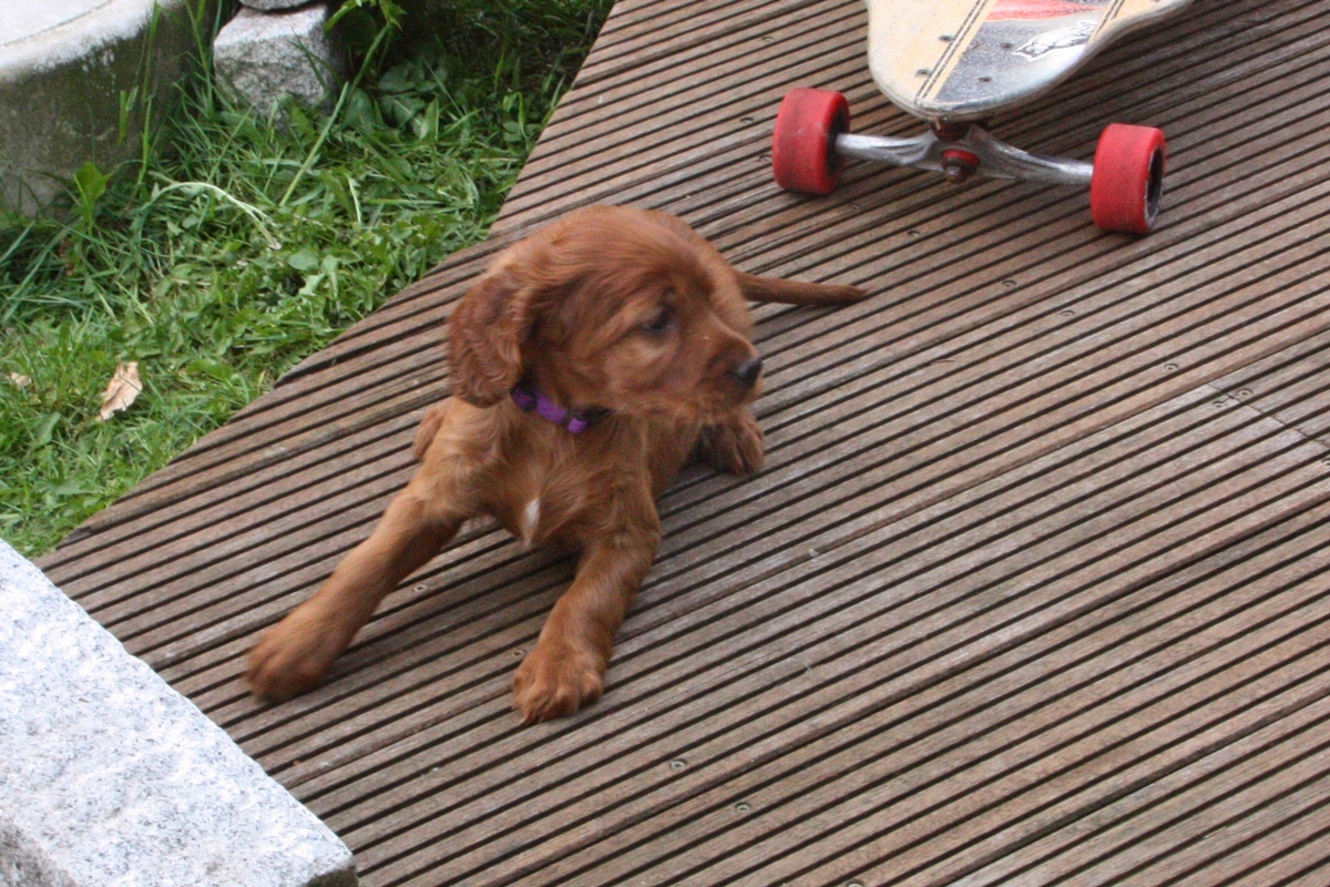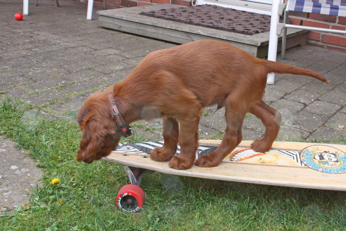 Heute war der erste Tag, an dem wir das Geschirr tragen geübt haben. Nach anfänglichem reiben und schuppern ging es über ins Spiel wie gewohnt. Auch Schlafen konnte man damit ohne Probleme! Im Augenblick sind Gaius, Great Bobby und Ginger Lily dran.