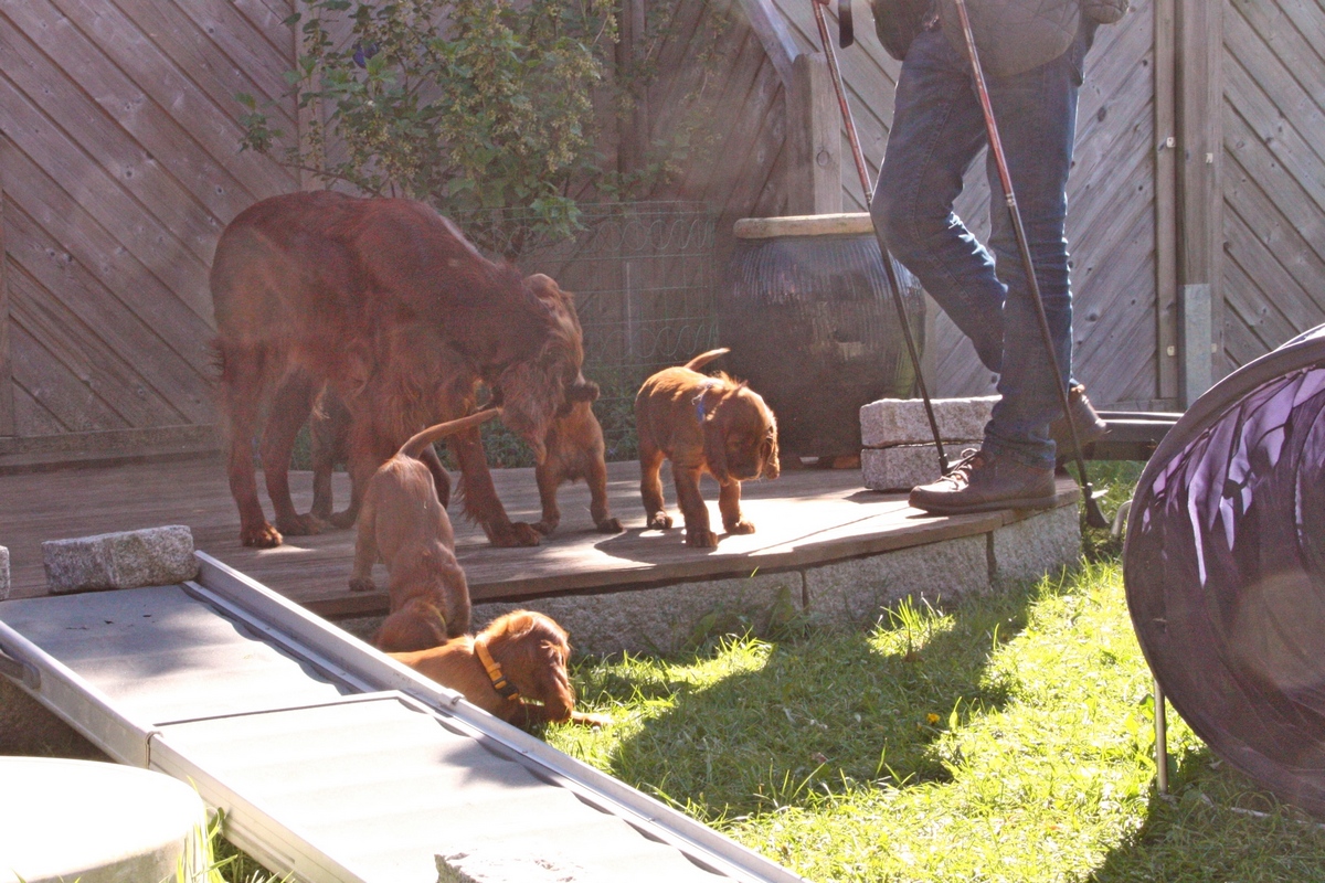 Diva wird wieder Kind - sie spielt mit - mit uns und mit ihren Welpen. 😊