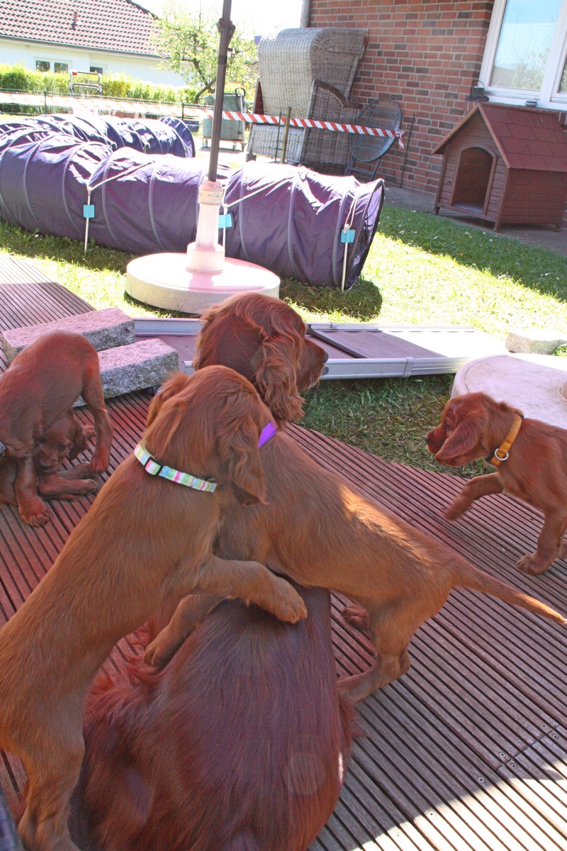 Am liebsten würden sie nur noch draußen sein, aber das geht natürlich nicht, denn die Nächte sind sehr kalt (Vorgestern 3 Grad, letzte Nacht 9 Grad). Entsprechend ist der Rasen morgens noch ganz nass und es ist sehr ungemütlich.